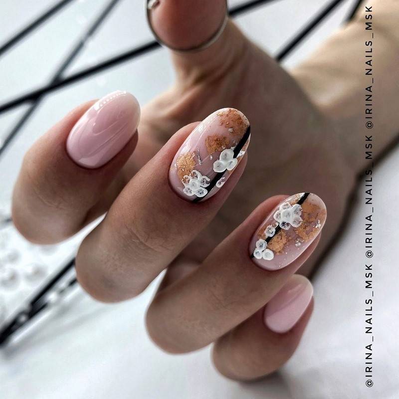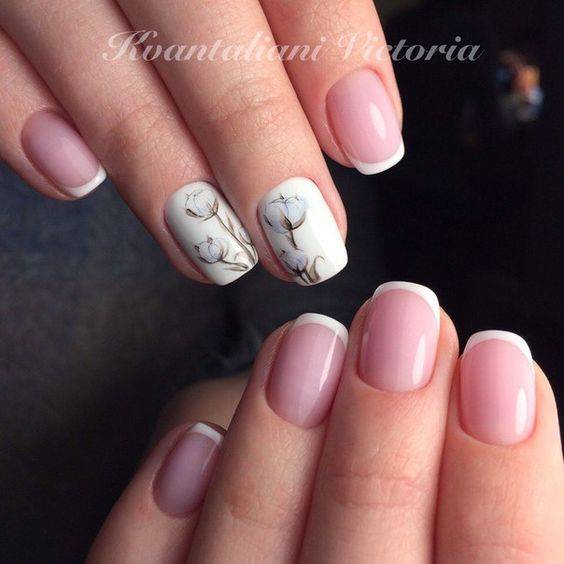 В тренде цветочный маникюр. Образ невесты всегда ассоциируется с цветком или распускающимся бутоном. Поэтому художники нейл-арта используют изображение цветов на розовом фоне с завидной регулярностью. Но акцент всегда на безымянном пальце, чтобы цветочное многообразие не перегружало нежный и воздушный образ невесты.