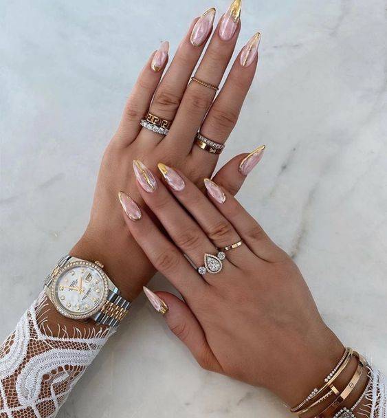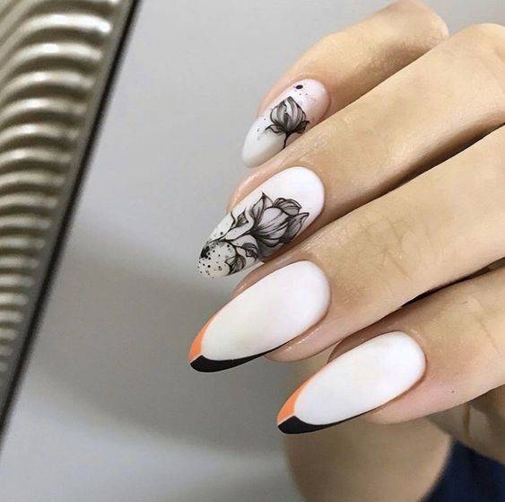 Что касается формы ногтей, то безусловным лидером считается миндалевидная. Именно эта нежная и женственная форма призвана показать очарование и красоту женских ручек. На миндальных ногтях великолепно выглядит овальный, треугольный френч. Они наиболее приближены к натуральной форме ногтя, выглядят лаконично и стильно даже без сложного декора.