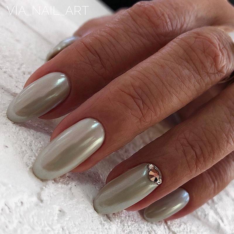 Кроме того, одним из трендов нового сезона станет дизайн свадебного маникюра с втиранием жемчуга на белые ногти. Этим декором можно украсить все пальцы или выделить один-два. Для втирания жемчуга идеально подходят другие пастельные оттенки свадебного нейл-арта: кремовый, нежно-розовый или голубой, сдержанный персиковый.