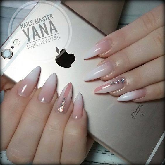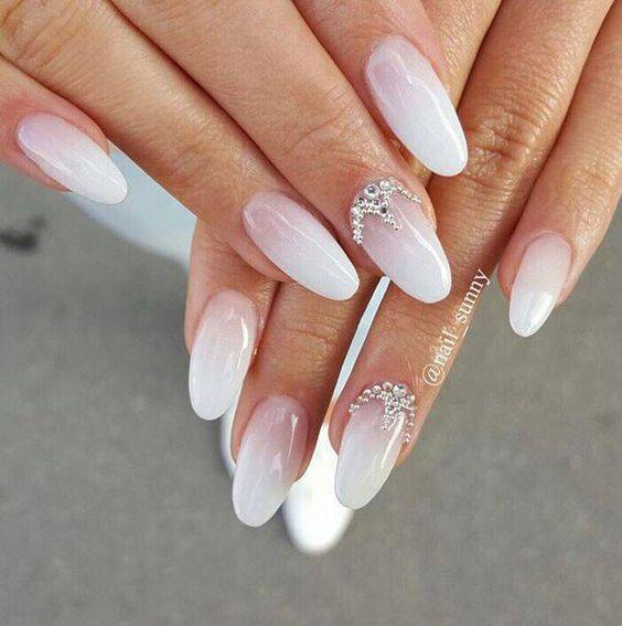 Эффект омбре великолепен и уникален своей изысканностью и сдержанностью. Небольшой переход оттенков в пастельных тонах создаст ощущение свежести и легкости. Для такого маникюра не подходят яркие оттенки, так как они будут привлекать слишком много внимания и выглядеть вызывающе. Градиентный (омбре) маникюр не нуждается в дополнительном декоре и прекрасно смотрится самостоятельно. Если вы все же решили привнести нотку вкуса в свой праздничный нейл-арт, лучшим дополнением станут небольшие стразы, бусинки и кружевной узор.