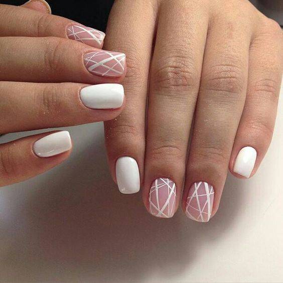 Геометрические рисунки в 2017 году завоевали особое место в сердце девушек. Поэтому их можно делать даже в качестве свадебного дизайна ногтей. Разные точки, полоски, зигзаги, абстракция и сложные геометрические композиции – все это уместно.