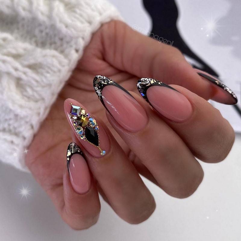 Черный маникюр гель-лаком подойдет любой женщине. Ведь вариантов его оформления масса. Черный цвет не требует вычурности и перегрузок рисунком. В таком цвете можно оформить и зеркальный маникюр гель лаком, и стеклянный маникюр, и лунный, и матовый, и френч, и со стразами. Единственное событие, в котором черный маникюр будет выглядеть нелепо – это свадебная церемония. И то, если свадьба не в готическом стиле.