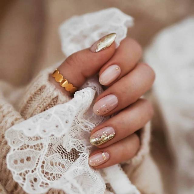 Оформлять все ногти в золоте может быть избыточным, поэтому лучше выбрать золотой рисунок.