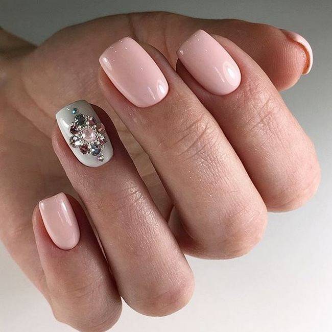 Романтизм такого оттенка трудно переоценить. Когда девушке хочется нежности, легкости и красоты, она начинает выбирать тот самый розовый из всех его оттенков. Нежно-розовый тон на короткую длину ногтевой пластины будет беспроигрышным вариантом.