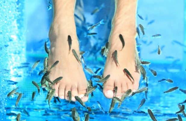 фиш-пилинг – стопы очищают от лишней кожи специальные рыбки;