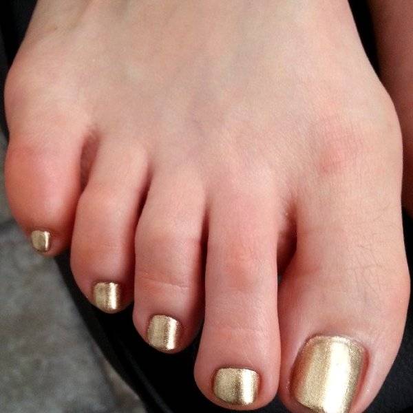 В этом году в моду также вошел педикюр золотого и серебряного цвета. С одной стороны, он выглядит просто, но в то же время оформлен со вкусом. Такой вариант отлично подходит для невест, у которых свадебное платье или аксессуары имеют блестящий оттенок. Если педикюр делается на наращенные ногти, то можно проэкспериментировать с объемным нейл-артом. Единственное, что его не стоит делать в том случае, когда девушка наденет закрытие туфли, потому что так элементы декора продержатся недолго и педикюр будет испорчен.