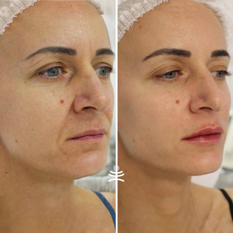 Во время процедуры пациент не испытывает болезненных ощущений, на коже не остается видимых мест проколов, не появляется покраснение и не остаются синяки, как после уколов. В результате, ваша кожа получает около 80 % Гиалуроновой кислоты, которая находится в составе геля. Кроме того, вместе с ней попадают и другие полезные компоненты.