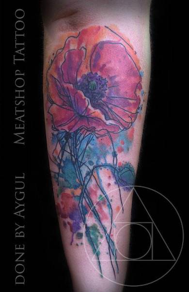 Эффект прозрачности, тонкие потёки, пятна, нежные цвета – татуировки в этом стиле выглядят на теле словно картины, сошедшие с полотен
