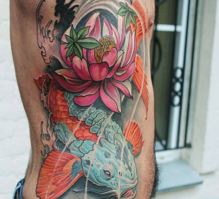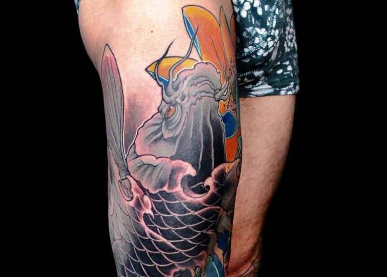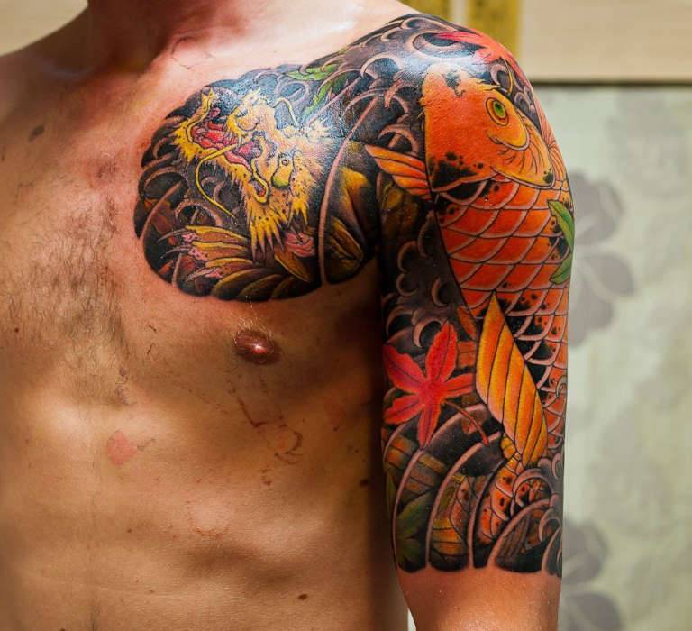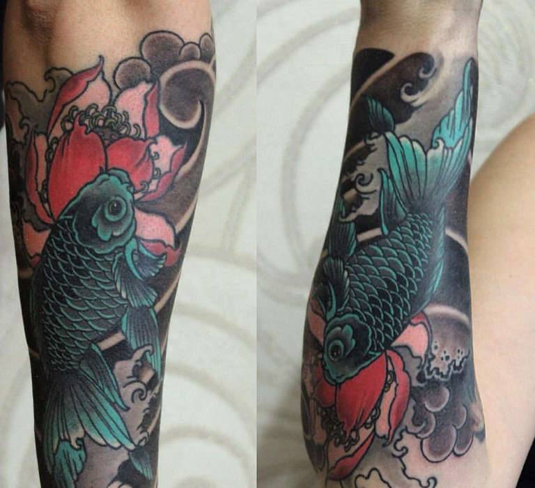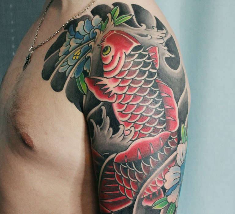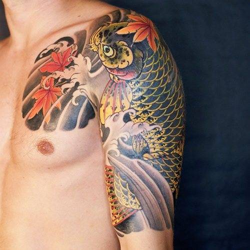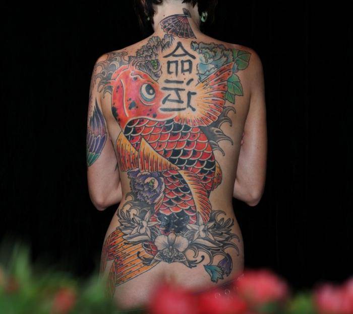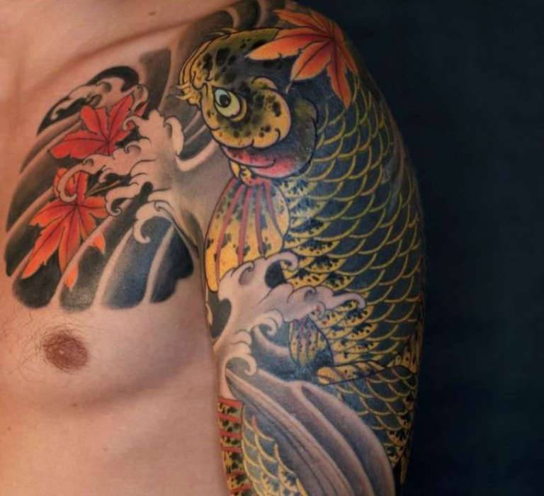 В японской культуре с особым вниманием относятся к нательным изображениям, потому как каждый рисунок несет в себе определенное обозначение. Изображение карпа — олицетворение счастья и процветания
