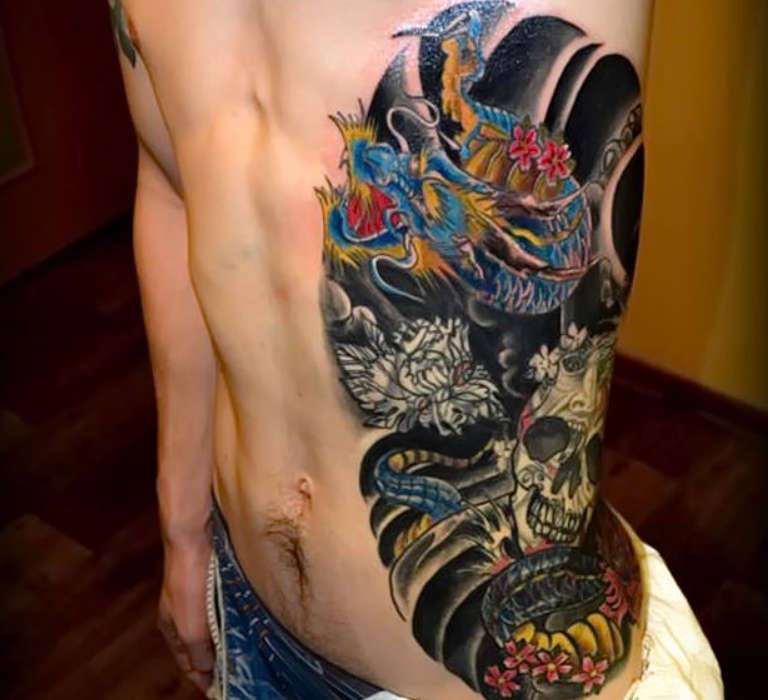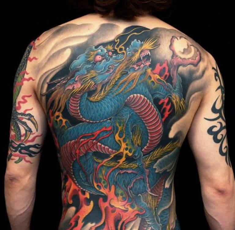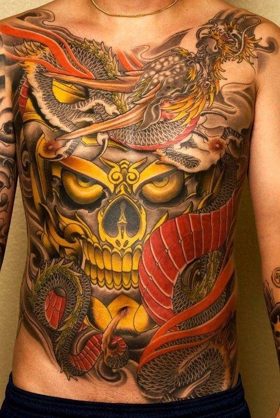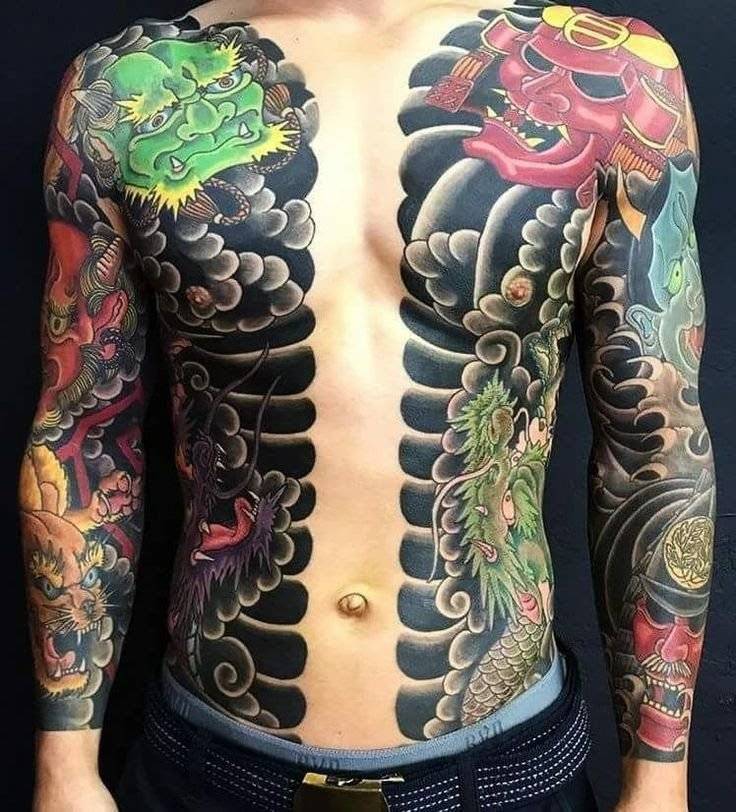 Цвета японских татуировок яркий, полный и однородный, без нюансов и хорошо насыщенный.