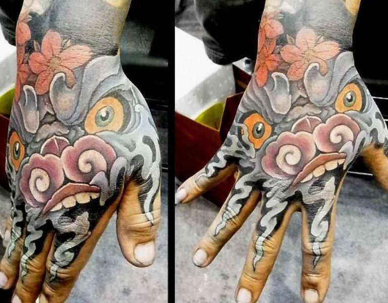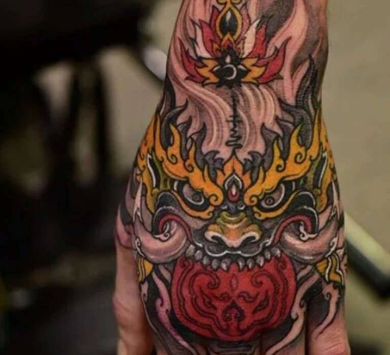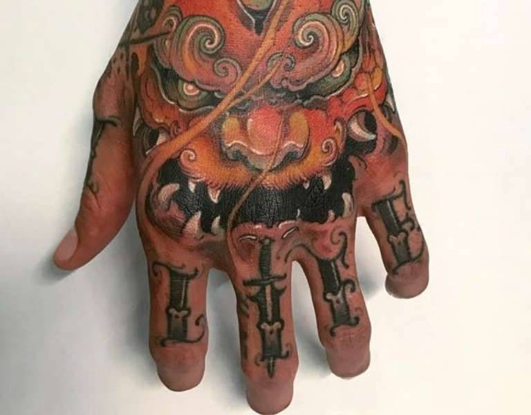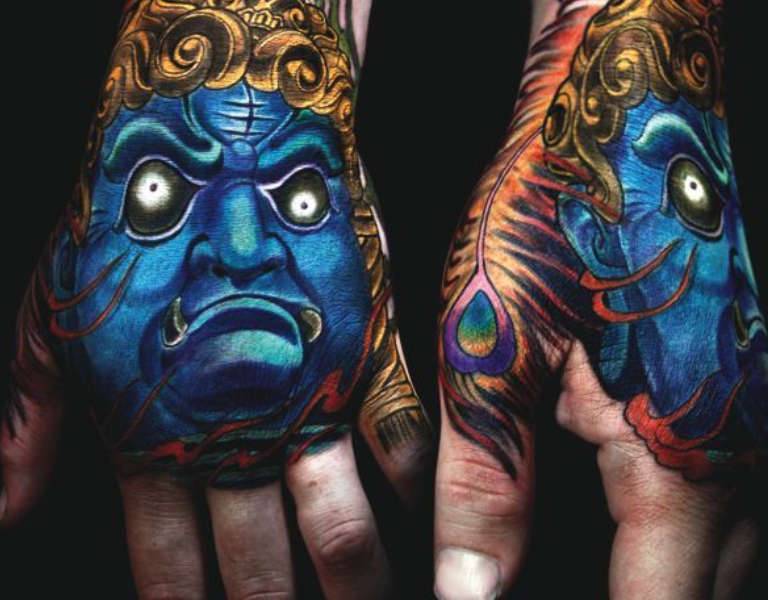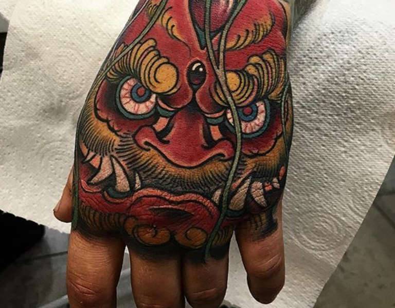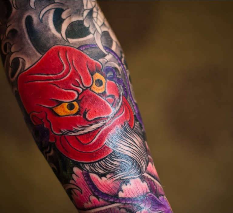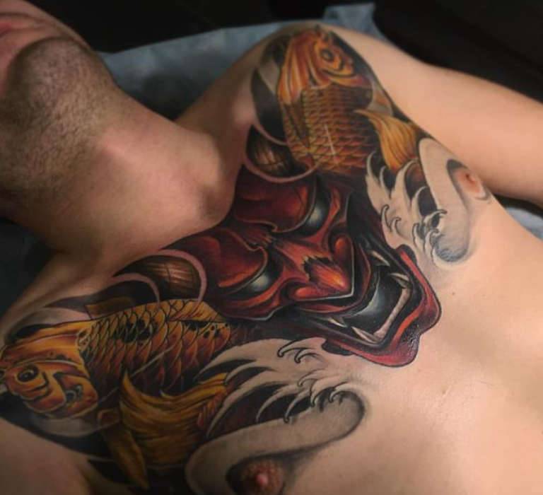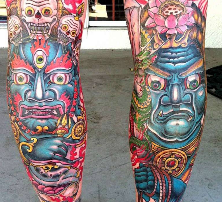 Мэнгу — это часть самурайского доспеха и использовалась такая маска только непосредственно в боевых действиях. То есть человек, делающий тату с японской боевой личиной, заявляет, что он стоит на пути воина прямо сейчас. Он готов к любым трудностям и испытаниям, он, метафорически говоря, всегда в полном боевом доспехе.