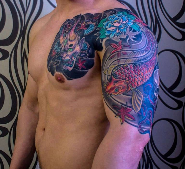 Только выбрав желаемый эскиз для тату, и понимая его значение, мужчина может обдумать, на какую зону тела можно набить татуировку. Японский стиль приемлет крупные и эффектные рисунки, а значит, чаще всего выбирают просторные зоны – руки, ноги, спина, грудь.