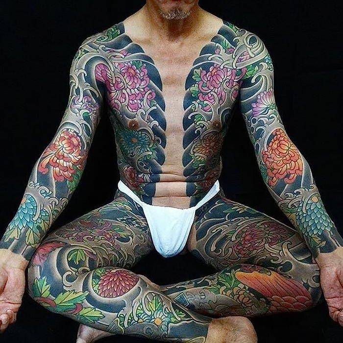 - Иредзуми – наколки, которые впервые появились на телах участков клана якудза. Обычно рисунки занимают все тело, начиная от ног и до шеи.