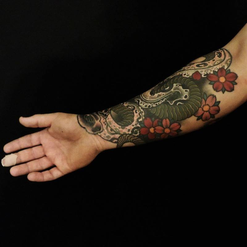 На предплечье места будет больше, поэтому сюда можно нанести целую композицию из разных эскизов. Но чаще всего сюда бьют тату якудзы, а также самураев и диких зверей. Тату носит демонстративный характер, показывая окружению качества и принципы обладателя.