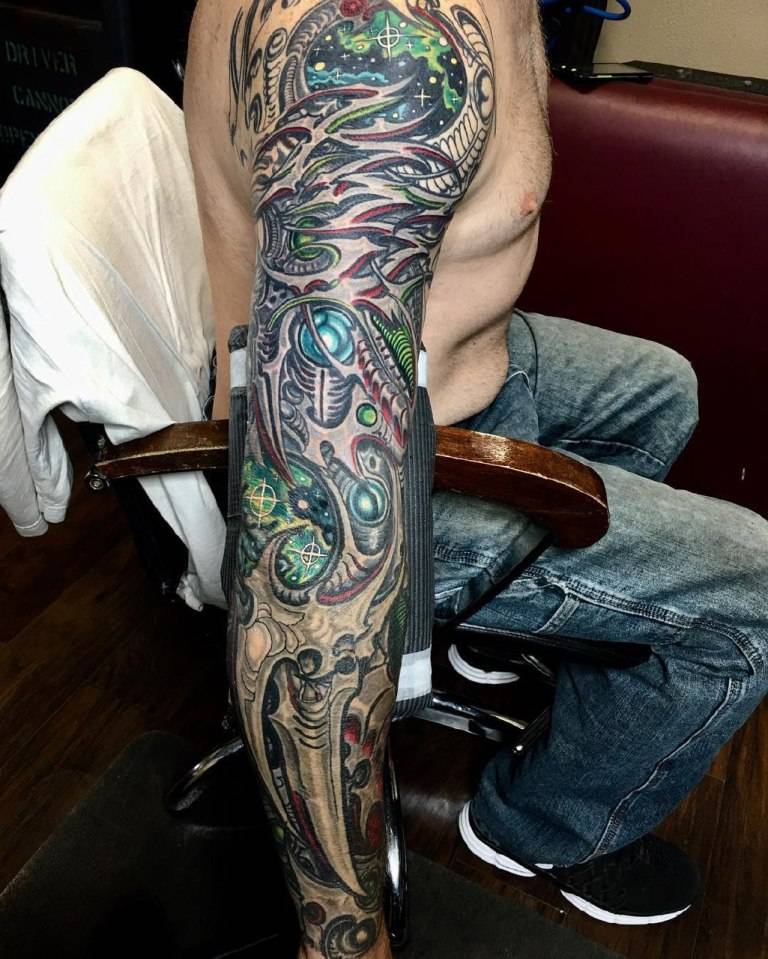 Тату рукав в стиле биомеханика