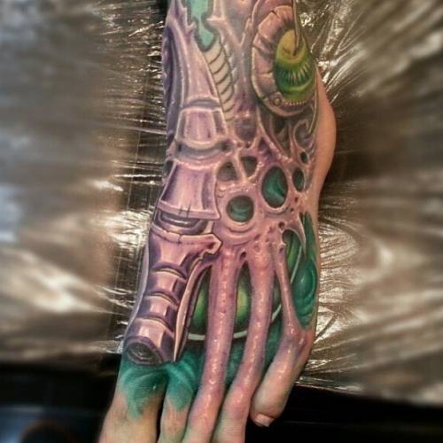 Тату Биомеханика на ноге