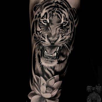 Так же, как и в других стилях, используются образы животных, которые олицетворяют определенные качества обладателя тату. Парни отдают предпочтение сильным хищникам – волку, медведю, льву. Девушки выбирают кошку, лису, пантеру. Хорошо будут смотреться на женском теле и цветы в черно-серой гамме.