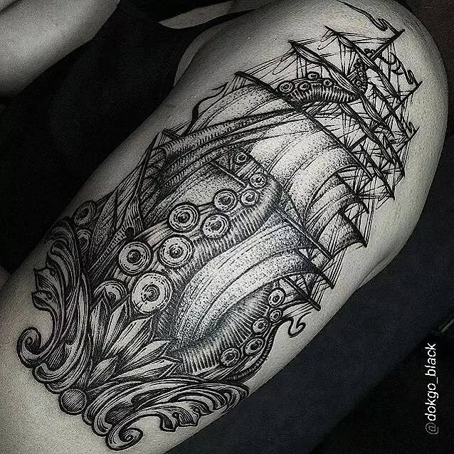 Если Вы любитель черного цвета и уважаете тату значительного размера – стиль блекворк придется Вам по душе. Конечно, эскизы могут быть разные, изобразить в этом стиле можно что угодно.