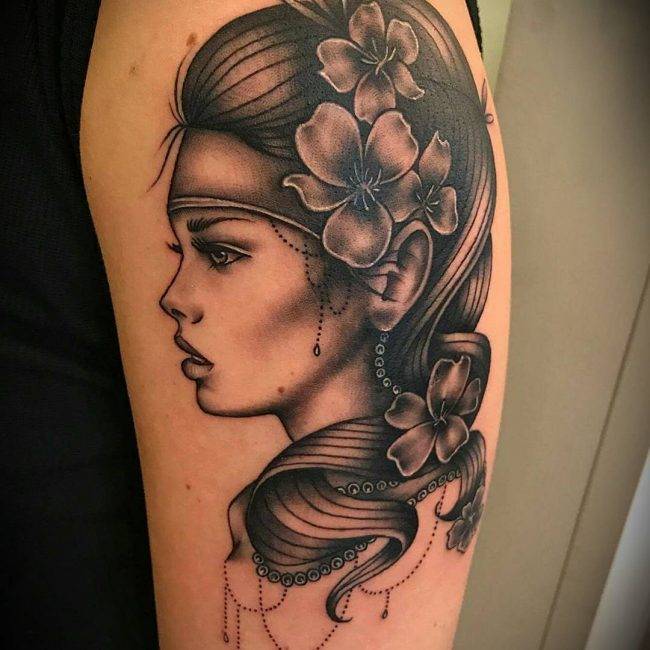 Tattoos that are done in black and gray look contrasting and very stylish. They will always be interesting for the genuine connoisseurs of art for whom the colored shell is not important, and all that matters is the deep meaning hidden in the intricate game of contrasts. Such tattoos are optimal for courageous, purposeful, and stylish people, not only indifferent to the pursuit of fashion trends but also honoring the traditions of the past.
