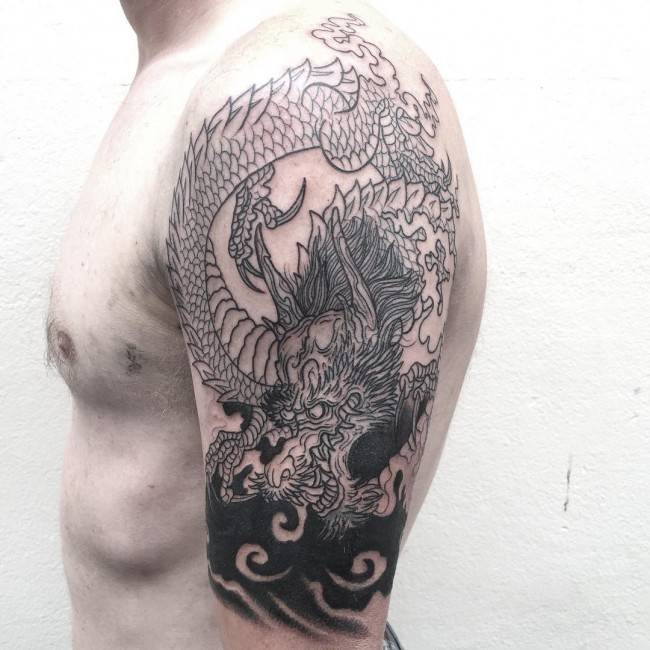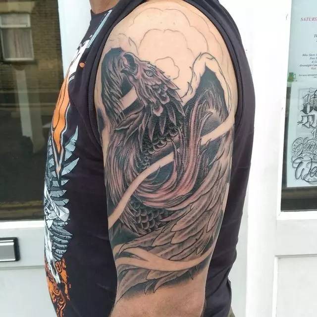 The tattoo uses black ink diluted in order to lighten up on the tint created on your skin. The grey wash tattoo looks great when placed on the back and shoulders. The other parts where you can have the tattoo include ribs, arm and any of your legs.