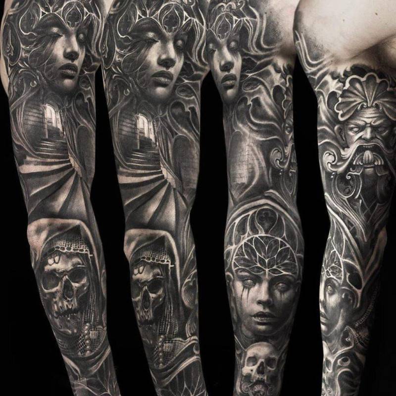 В качестве эскизов к черно-серым татуировкам чаще всего выступают: