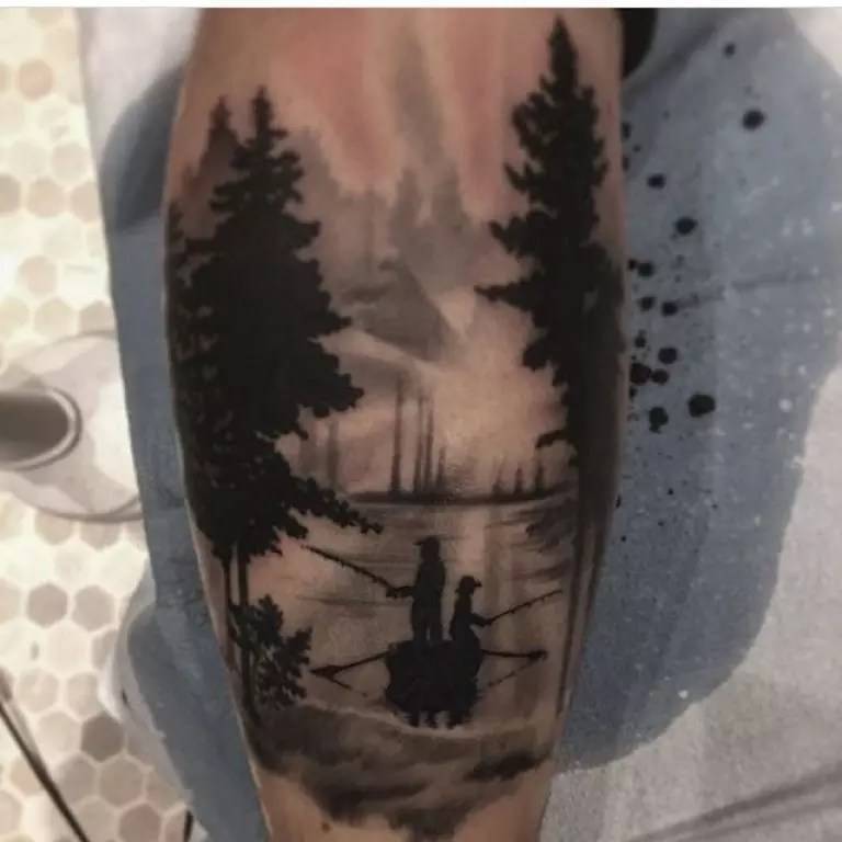 Мужчины любят рисунки в виде четких геометрических фигур, которые придают особую брутальность и эффектность. Популярным считается тату блекворк лес – это изображение таинственного черного леса на белой коже. В рисунок, по желанию, добавляются другие детали, например, пролетающие над верхушками деревьев птицы. Картина завораживает своей таинственностью и мрачностью. Такую работу не захочется скрывать под слоями одежды, поэтому ее изображают на рукаве.