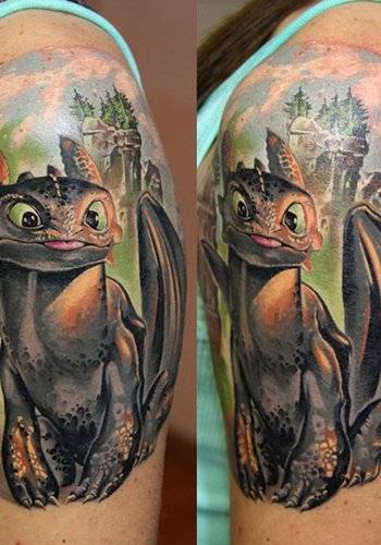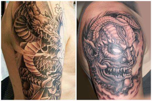 Прекрасные мифические существа. В одних произведениях драконы злые, изворотливые и хитрые, в других сосуществуют с человеком, помогают ему и даже выступают чем-то вроде любимцев. Почему-то в искусстве татуировки с ними часто происходят непонятные вещи: люди хотят видеть дракона на плече, обращаются к мастеру-новичку, и получается… Выбирайте хороших мастеров!