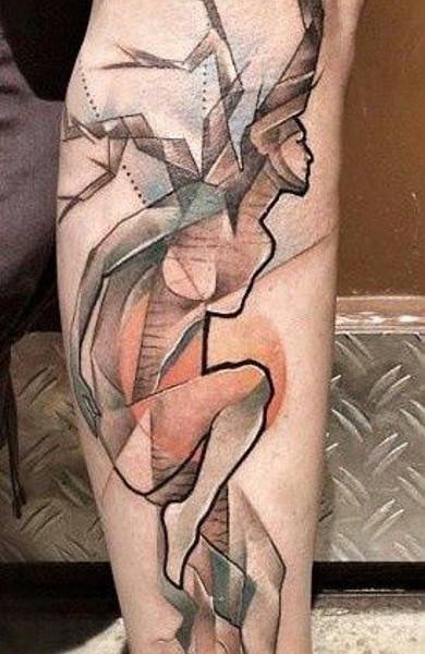 • Тату геометрия — акварель — размытые цветные брызги и пятна, которые выглядят будто акварельный рисунок художника. Обычно это прозрачные мазки, с еле заметным цветом. Но есть и яркие, оригинальные рисунки. Все индивидуально. Эффект деграде — плавные переходы от одного цвета к другому. Своеобразное смягчение тона в одной цветовой палитре.