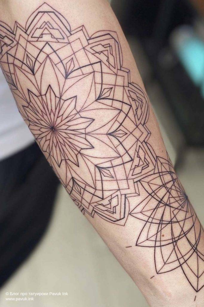 Графическая татуировка придает владельцу индивидуальность, так как простые линии превращаются в сложный рисунок, способный подчеркнуть индивидуальность и характер.