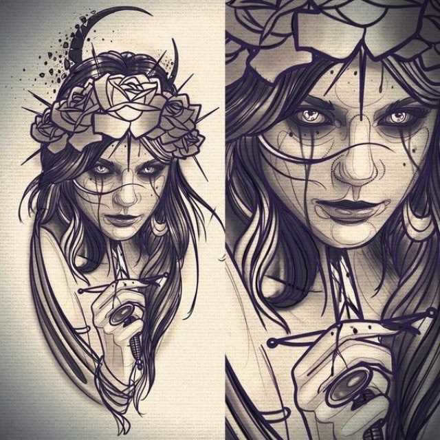Мастера, имеющие отношение к художественному искусству, особенно полюбили татуировки графика. Они прекрасно находят свою вдохновение в классических старинных гравюрах, а также в работах Брэдли или Шиле.