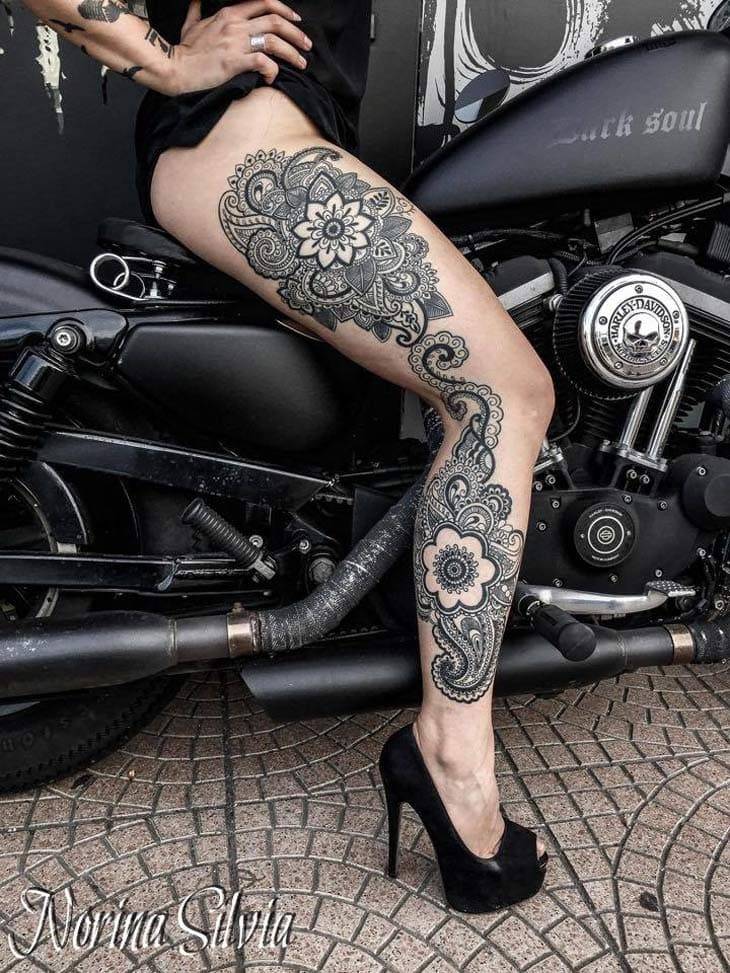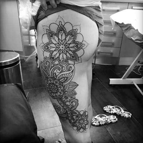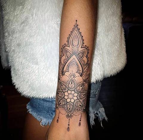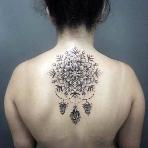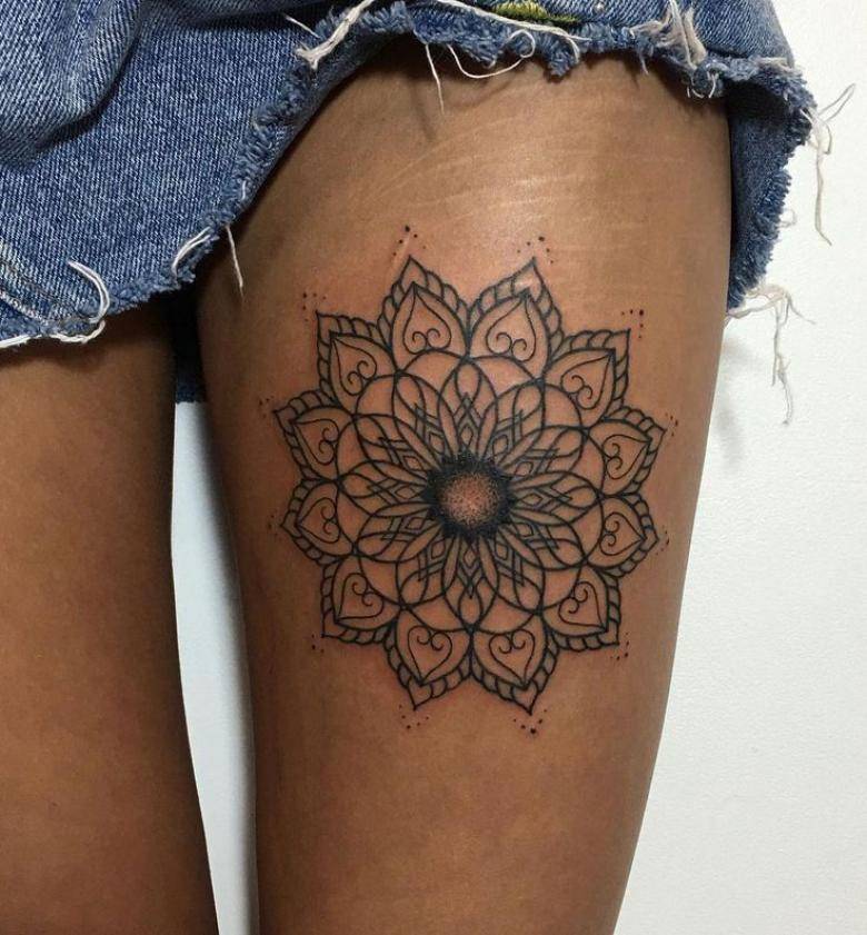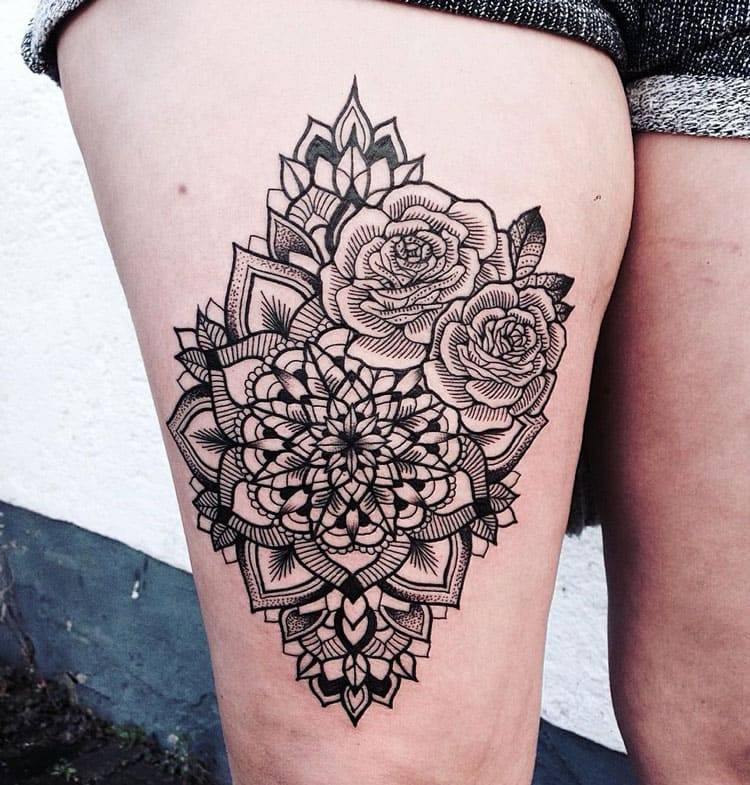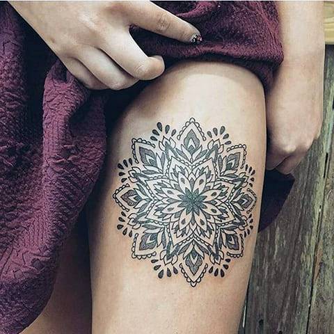 Любая девушка будет в восторге от изображения мандалы на теле, потому что она всегда смотрится очень красиво, женственно и нежно. Различные узоры, вензеля будут идеально дополнять стиль девушки.