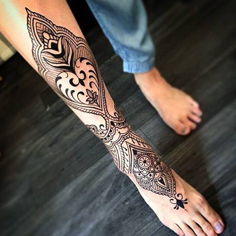 Если вы не хотите привязывать рисунок к какой-то точке на энергетической карте тела, можно использовать универсальные варианты. Часто встречается татуировка на предплечье, на ноге – стопе, бедре, икре, щиколотках, или даже колене.