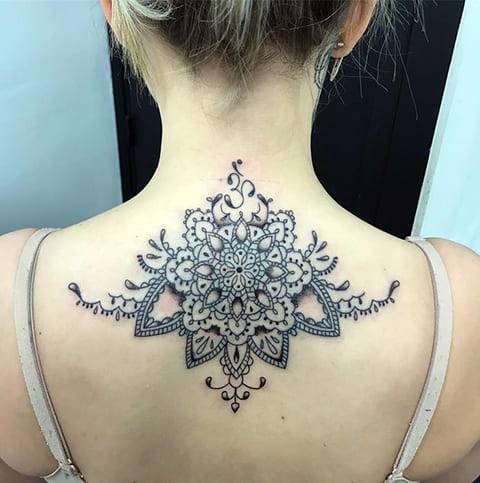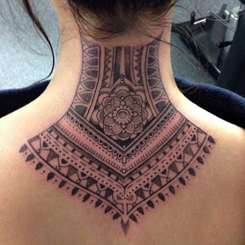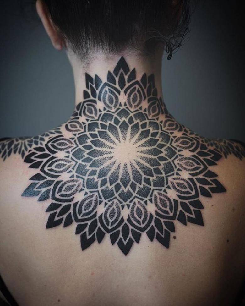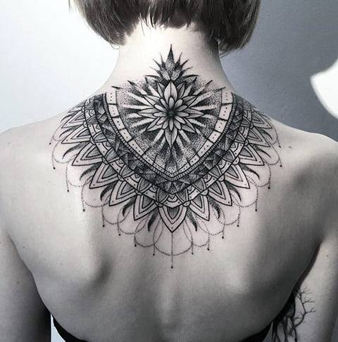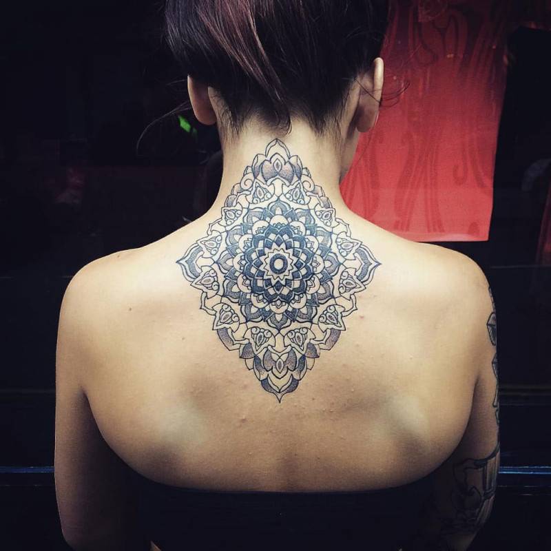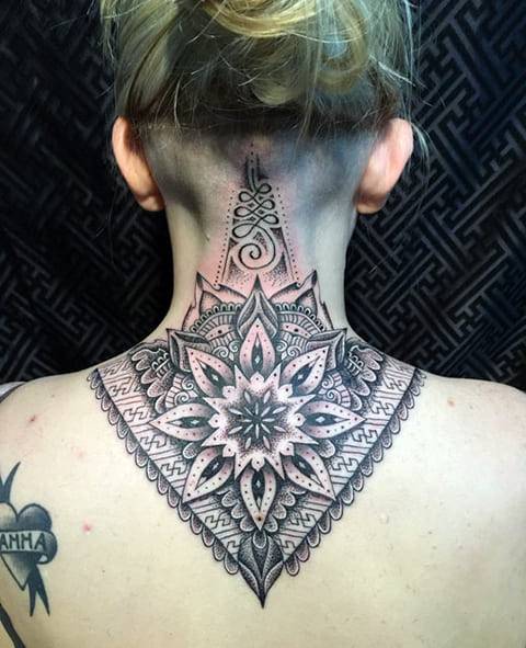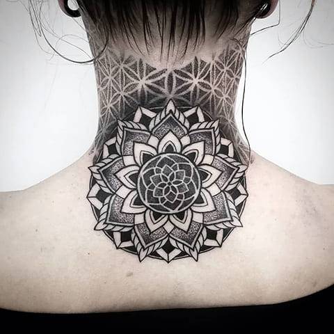 Еще одно отличное решение – тату мандала на шее. Этот участок тела интересен тем, что является некой переходной точкой между физическим, ментальным и духовным аспектами человеческого существования.