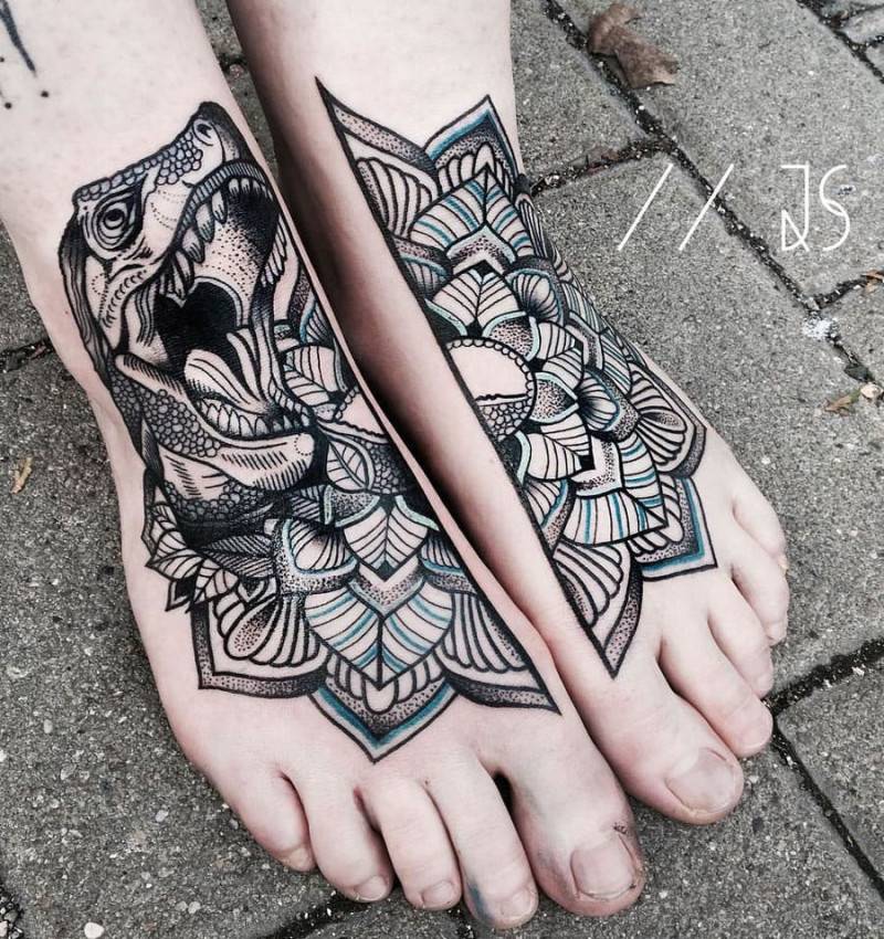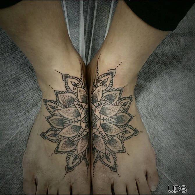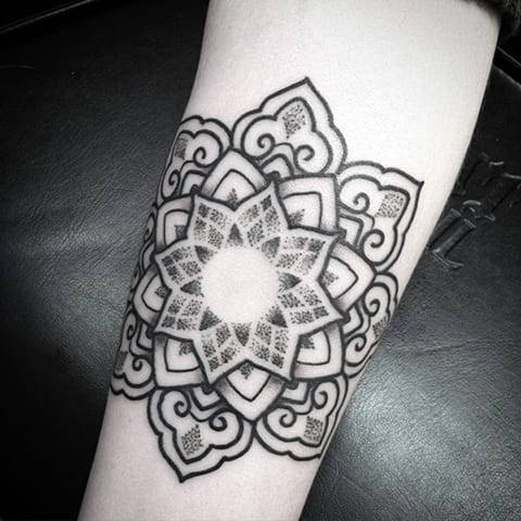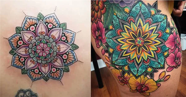 Нередко представители обоих полов отдают предпочтение татуировкам с изображением мандалы. Такой рисунок собой представляет круг, в котором расположен квадрат. В центре изображается символ поклонения. Такая татуировка олицетворяет гармонию и упорядоченность мира, а также внутреннее спокойствие. Подобный нательный рисунок является оберегом для своего обладателя, и является татуировкой оберегом.