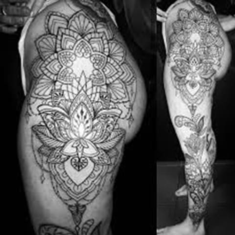 Мандала лотоса — это разновидность татуировки мандалы. Она отличается тем, что состоит только из лепестков и не имеет геометрических фигур внутри. Лепестки образуют форму круга как общее изображение. По сравнению со стандартным вариантом, мандала лотоса действительно похожа на этот цветок.