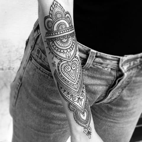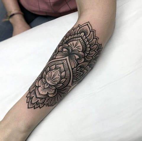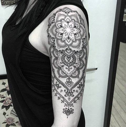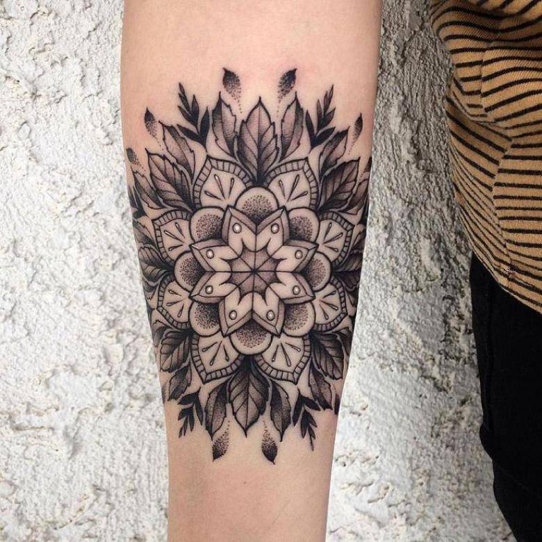 Лучшая мандала для девушек — мандала любви и гармонии. Даже если вы не планируете семью и детей, это изображение поможет вам обрести внутренний баланс физического и душевного, мужского и женского, силы и смирения. Именно стремление к внутреннему равновесию приводит многих людей к тому, чтобы сделать такую татуировку в тату-салоне. Женский вариант часто имеет цветочные мотивы, множество круглых деталей и вензелей.
