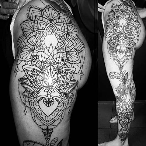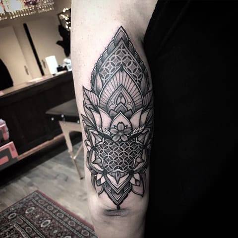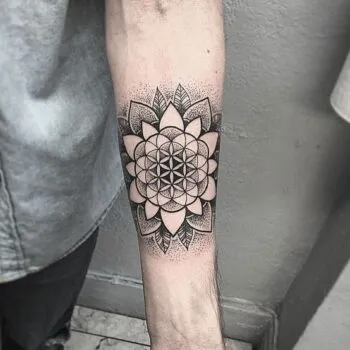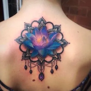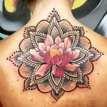 Лотос является символом буддийской культуры и олицетворяет чистоту души и духа. Татуировка «Мандала лотоса» защищает своего владельца не только от темных сил, но и от негативных мыслей и необдуманных поступков своего обладателя. Эта татуировка способна трансформировать качества человека, энергии