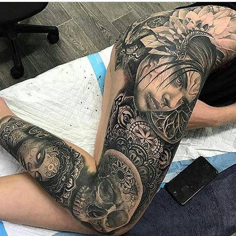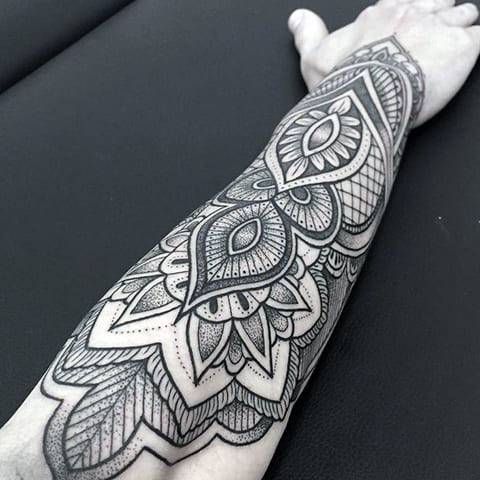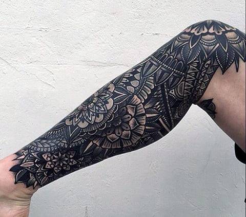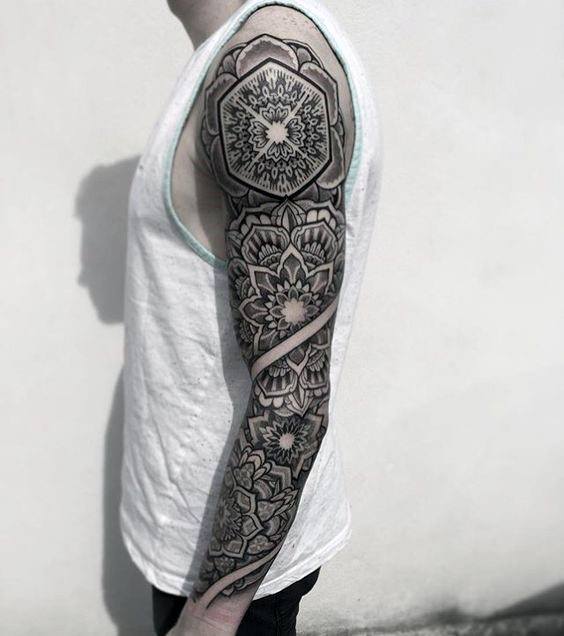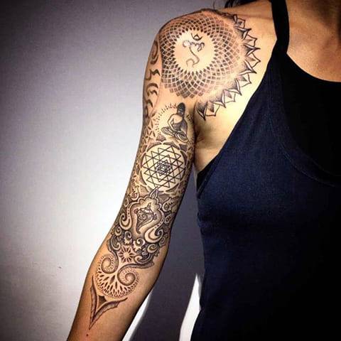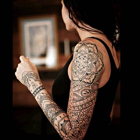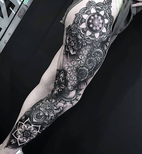 Из мандал и дополнительных деталей можно набить тату-рукав. Он будет выглядеть эффектно и красиво, при этом неся особый сакральный смысл для каждого человека. Можете использовать разные по значению узоры. Одни будут вас гармонизировать, другие защищать от различных негативных внешних воздействий, третьи – привлекать удачу.