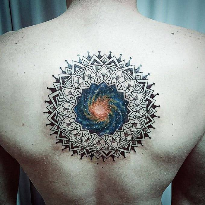 Мужчины часто делают татуировки мандалы удачи. Такая татуировка помогает решительным молодым людям на пути к достижению того, что они задумали. Кроме того, мандала поглощает негативную энергию и очищает ее. Чаще всего мужчины делают татуировку большого размера, изображая мотив на спине, груди и животе.