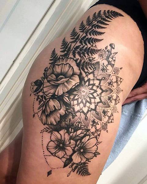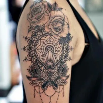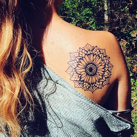 Мандала с цветами, например, лотосом, является одной из самых популярных. Такой дизайн называется Flower Mandala Tattoos. Название он получил за сходство цветами: они расширяются из центра окружности подобно лепесткам подлинного цветка. Этот дизайн символизирует вечность, расцвет идеи. Допустимо вкрапление таких элементов, как пчела, колибри, мотылек. Такие дополнения могут символизировать женскую сущность, рождение новой жизни.