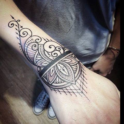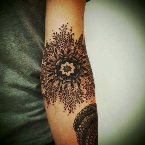 Считается, что тату мандала на руке как бы руководит жизнью человека, проводя определенные космические сигналы через его тело. Поэтому стоит внимательно отнестись к тому, какой смысл будет нести этот символ. Изобразить его можно на кисти, или на запястье. Интересный вариант размещения – локоть, причём, как внешняя, так и внутренняя его сторона.