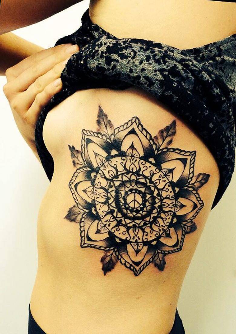 Отлично будет смотреться мандала на ребрах. Достаточно часто встречается двухсторонний вариант.