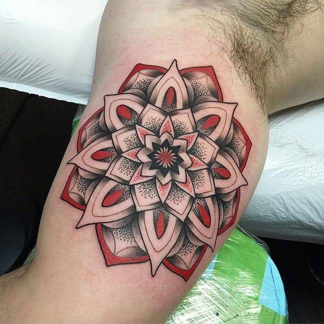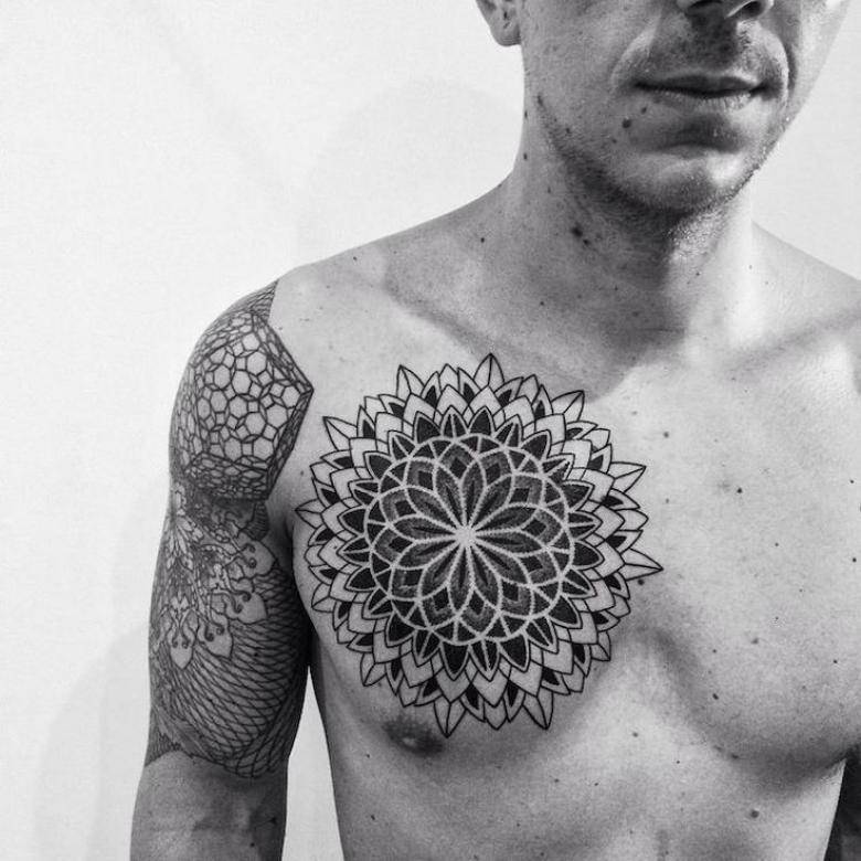 Для парней значение тату в корне отличается. Во-первых, парни не делают татуировку с целью поиска и обретения любви. В мандале парней проявляются мужские качества: желание обрести мудрость, просветление, силу и целеустремленность. Символ помогает мужчине не отвлекаться на отрицательную энергию и продолжать борьбу, выполняя больше защитную функцию.