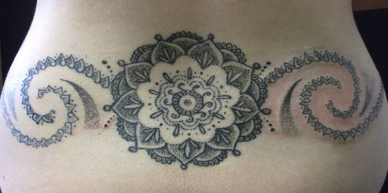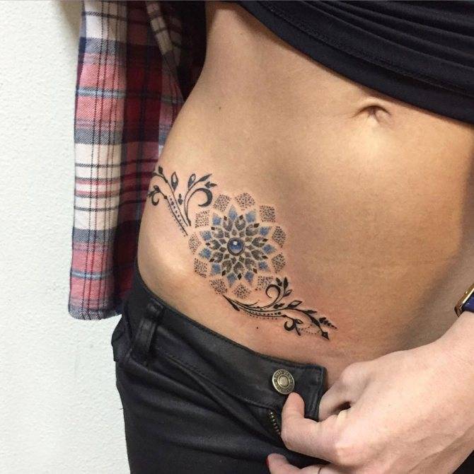 Любая девушка будет в восторге от изображения мандалы на теле, потому что она всегда смотрится очень красиво, женственно и нежно. Различные узоры, вензеля будут идеально дополнять стиль девушки.
