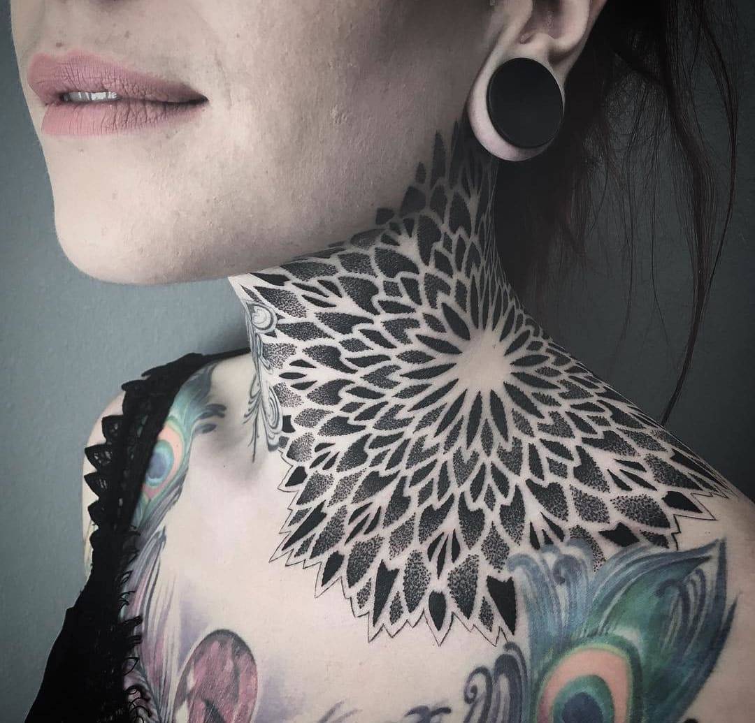 Еще одно отличное решение – тату мандала на шее. Этот участок тела интересен тем, что является некой переходной точкой между физическим, ментальным и духовным аспектами человеческого существования.