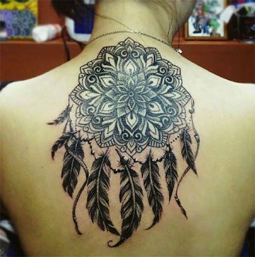 Часто можно увидеть комбинированные рисунки, сочетающие классику и более современные мотивы, и даже фэнтези. К примеру, у девушек пользуется успехом тату с луной в стиле мандала.
