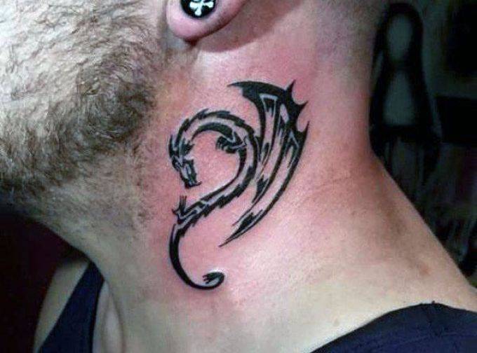 Такого изящного дракона можно аккуратно разместить на шее — это тату не займет много места