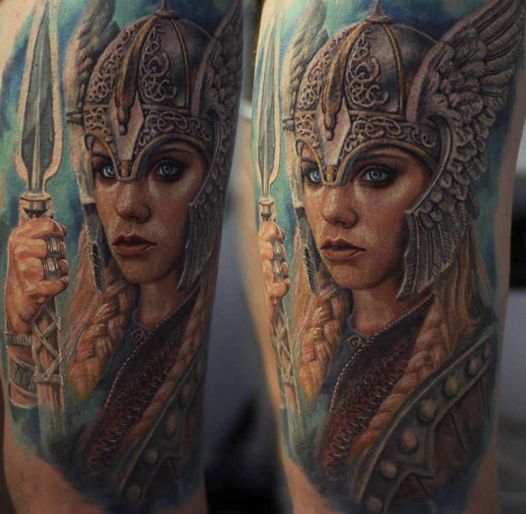 На плече оригинально будет смотреться татуировка с разными божествами или воинами, олицетворяющими силу, отвагу и сильную защиту мужчины.