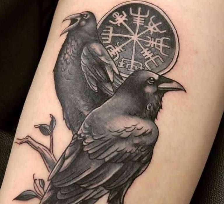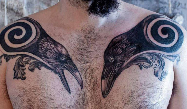 Вороны Хугин и Мунин – птицы в скандинавской мифологии являются символом метафор, мыслей и памяти. А значит, тату говорит о поиске самого себя, размышлениях и познанию истины.