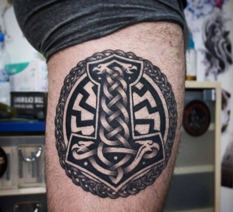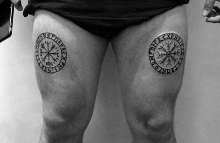 Скандинавские татуировки редко бьют на бедрах, это скорее выбор женской половины общества. Чаще всего это узоры или целый орнамент, состоящий из разных повторяющихся узоров.